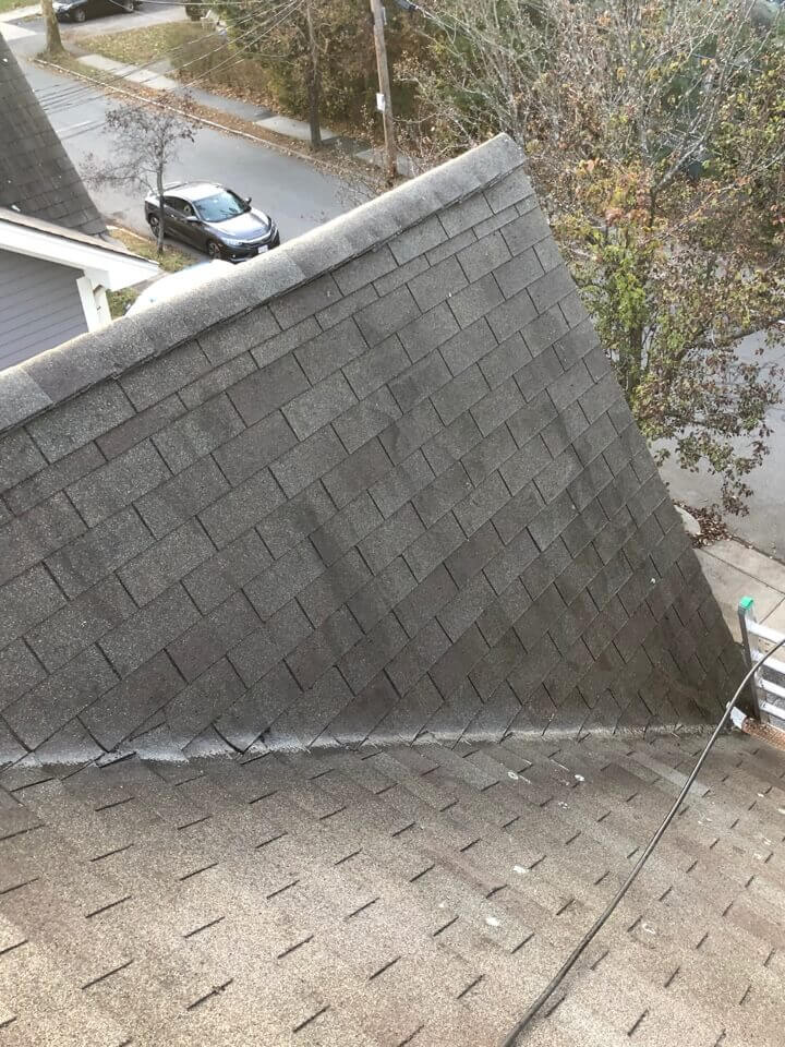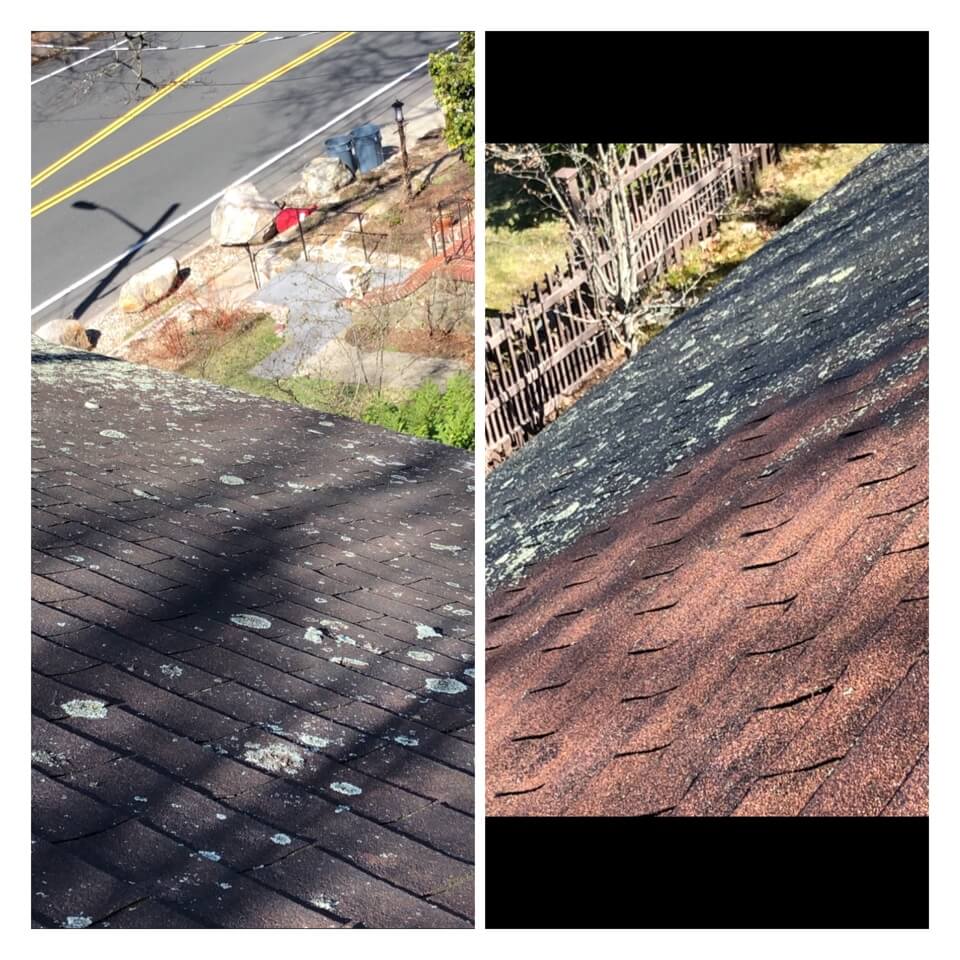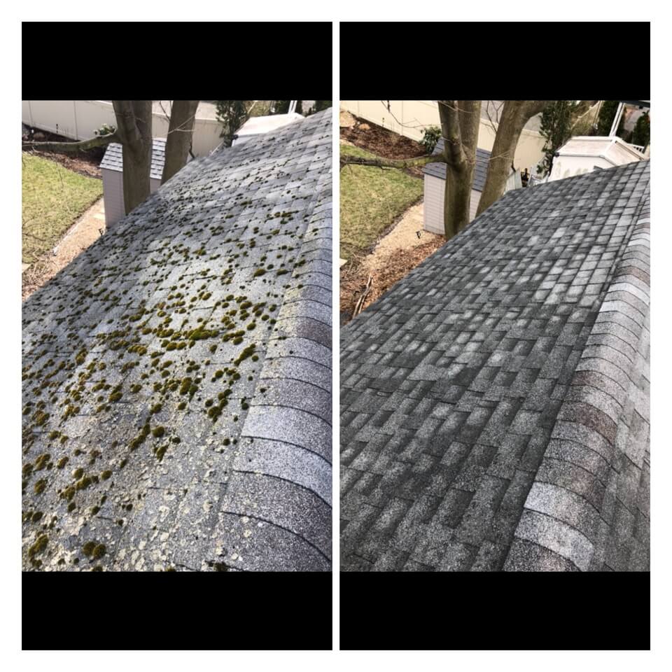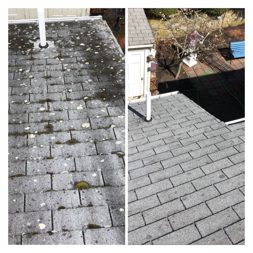HiCleaners is the most experienced company in Mason, NH that deals with roof washing and roof soft washing. All of our employees are trained to recognize precise solution mixing ratios to provide you with the safest and most effective soft washing service. Roofs are a commonly neglected part of a house due to the fact that most people don’t have ladders to access it, so it is very easy to just leave it alone and forget about problems that may start to arise. Just like many home owners, discoloration and small bits of moss on a roof can be overlooked because of the misconception that it is just aesthetic. However, it isn’t just aesthetic, the moss slowly lifts the granules off the shingles which in turn shorten the life of the shingle. The moss also spreads, just like any bacteria if it is left alone for too long, it can quickly become a problem that spirals out of control. Call HiCleaners for a free quote, we only use the most advanced eco-friendly solutions and equipment to make sure the job is done right, for the safety of the employees, your plants, grass, pets, and children.